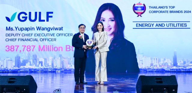 นางสาวยุพาพิน วังวิวัฒน์ รองประธานเจ้าหน้าที่บริหารและประธานเจ้าหน้าที่บริหารด้านการเงิน GULF กล่าวว่า “รางวัล Thailand’s Top Corporate Brands 2024 เป็นเครื่องยืนยันถึงความมุ่งมั่นของ GULF ในการพัฒนาธุรกิจอย่างต่อเนื่องและสร้างสรรค์ สะท้อนให้เห็นถึงความแข็งแกร่งของบริษัท ทั้งในด้านฐานะทางการเงินที่มั่นคงและกระแสเงินสดที่สม่ำเสมอ ซึ่งเป็นผลมาจากการบริหารองค์กรที่มีประสิทธิภาพ พร้อมกับการดำเนินธุรกิจอย่างมีความรับผิดชอบต่อสิ่งแวดล้อมและสังคม เพื่อสร้างมูลค่าเพิ่มให้กับแบรนด์และผลตอบแทนให้ผู้ถือหุ้นอย่างยั่งยืน”