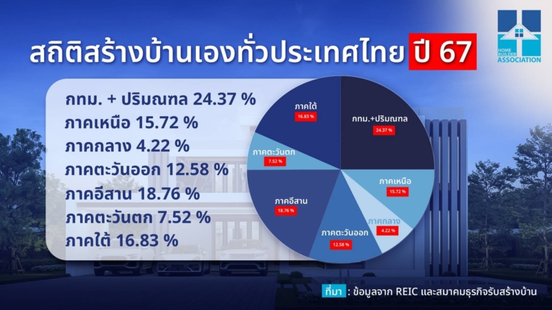 โดยตลาดรับสร้างบ้านแบ่งตามภูมิภาค มีสัดส่วนในปี 2567 ดังนี้