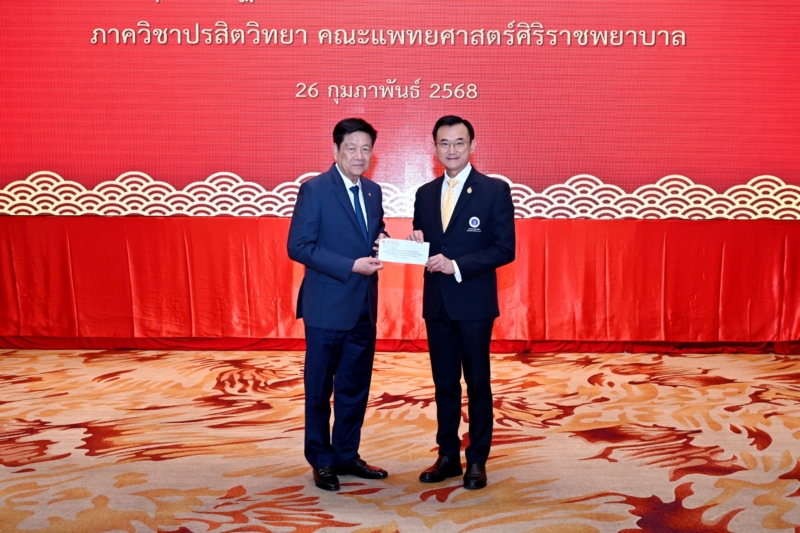 เมื่อวันที่ 26 กุมภาพันธ์ 2568 นายณรงค์ศักดิ์ พุทธพรมงคล ประธานกรรมการหอการค้าไทย-จีน และคณะกรรมการบริหารหอการค้าไทย-จีน ประกอบด้วยด้วยรองประธาน ได้แก่ นายบุญยงค์ ยงเจริญรัฐ, นายสงวน ชื่นพาณิชยกุล, นายสินชัย งามวงศ์มาศ, นายสมเกียรติ เหล่าทวีสุข, นายสรสินธุ ไตรจักรภพ, และ นายอุดม สุขสุดประเสริฐ พร้อมด้วย นายชาลี แซ่ลิ้ม รองเลขาธิการรบริหาร และประธานมูนิธิเพื่อสัมพันธภาพไทย-จีน และ นายกุ้ยหยาง โชว ผู้อำนวยการฝ่ายสวัสดิการและการกุศล และรองประธานมูลนิธิเพื่อสัมพันธภาพไทย-จีน ร่วมส่งมอบเงินบริจาคแก่คณบดี คณะแพทยาศาสตร์ศิริราชพยาบาล เพื่อร่วมสมทบทุน “โครงการปรับปรุงห้องปฏิบัติการต้นแบบจำลอง (SI Makerspace)” ภาควิชาปรสิตวิทยา จำนวน 10 ล้านบาท เพื่อช่วยขับเคลื่อนให้โครงการนี้บรรลุเป้าหมายและเกิดประโยชน์แก่ทางการแพทย์และสังคมโดยรวม