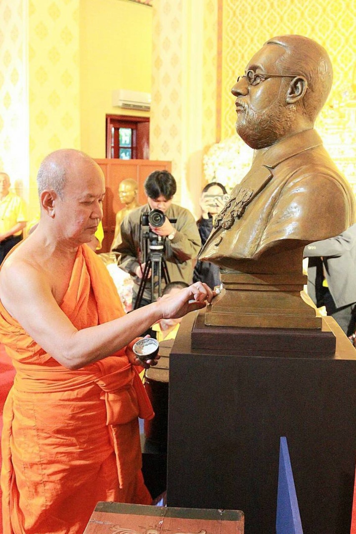 พิธีเจิมรูปปั้น มิสเตอร์คาร์ลบ๊อค นักสำรวจชาวนอร์เวย์ ผู้เผยแพร่วัฒนธรรมไทยในยุโรป 5 ประเทศเมื่อ 140 ปีก่อน ณ ศาลาการเปรียญ วัดสระเกศราชวรมหาวิหาร