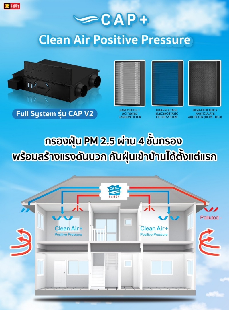 บริษัท แลนดี้ โฮม (ประเทศไทย) จำกัด ในฐานะผู้นำธุรกิจรับสร้างบ้าน เผยว่า ยอดขายพุ่งมา 4 ปีซ้อนเพราะเป็นรายแรกและรายเดียวในสมาคมธุรกิจรับสร้างบ้าน ที่ ติดตั้งระบบ (CAP+ Clean Air Positive Pressure) เป็นมาตรฐานในบ้านทุกหลัง เพื่อปกป้องสุขภาพของผู้อยู่อาศัย โดยระบบดังกล่าวเป็นระบบ Full System ที่ติดตั้งมาพร้อมกับตัวบ้าน โดยไม่มีค่าใช้จ่ายเพิ่มเติม นี่คือเทคโนโลยีที่ไม่มีในบริษัทรับสร้างบ้านเจ้าอื่น ซึ่งแตกต่างจากบ้านทั่วไปที่ยังคงต้องพึ่งพาเครื่องฟอกอากาศแบบเฉพาะจุด โดยระบบนี้ไม่ใช่แค่ฟังก์ชันเสริม แต่เป็น “เกราะป้องกันบ้านป้องกันฝุ่น PM 2.5” ได้ตั้งแต่แรกก่อนเข้าสู่ภายในบ้าน