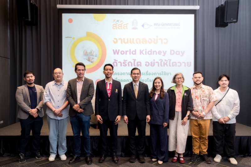 ที่โรงแรมทริปเปิ้ล วาย / เมื่อเวลา 10.00 น. วันที่ 13 มี.ค. 2568 สำนักงานกองทุนสนับสนุนการสร้างเสริมสุขภาพ (สสส.) ร่วมกับ คณะนิเทศศาสตร์ จุฬาลงกรณ์มหาวิทยาลัย จัดงานแถลงข่าว “ World Kidney Day ถ้ารักไต อย่าให้ไตวาย ” ภายใต้โครงการการสื่อสารเรื่องการใช้ยาเพื่อลดความเสี่ยงโรคไต เสริมสร้างความรู้ ความเข้าใจ เกี่ยวกับการใช้ยาและส่งเสริมพฤติกรรมการใช้ยาที่ถูกต้อง