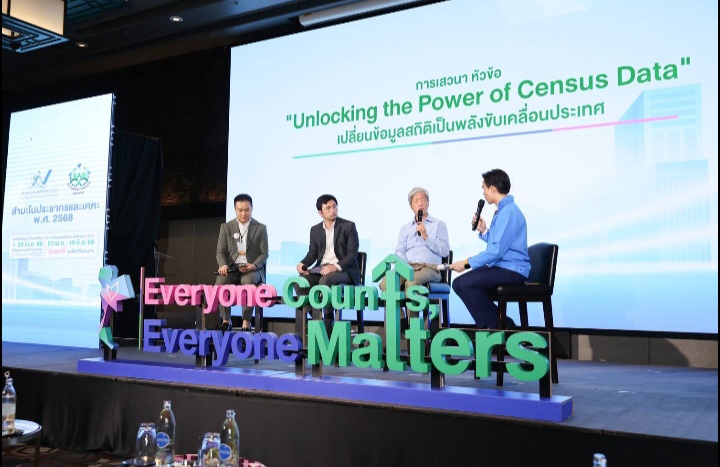 โดยยังมีการเสวนา 2 หัวข้อสำคัญ ได้แก่ หัวข้อ “Big Data, Big Responsibility เชื่อมั่นในการให้ข้อมูลสถิติ เพื่อความก้าวหน้า” โดยมีพันตำรวจเอก สุรพงศ์ เปล่งขำ เลขาธิการ คณะกรรมการคุ้มครองข้อมูลส่วนบุคคล (สคส.), นายเอกพงษ์ หริ่มเจริญ ผู้อำนวยการศูนย์ปฏิบัติการต่อต้านอาชญากรรมออนไลน์ (AOC), นายยุทธศาสตร์ นิธิไพจิตร ผู้ช่วยกรรมการผู้จัดการใหญ่ บริษัท โทรคมนาคมแห่งชาติ จำกัด (มหาชน) และพันตำรวจเอก ณัทกฤช พรหมจันทร์ ผู้อำนวยการสำนักบริหารโครงสร้างพื้นฐานสำคัญทางสารสนเทศ (สกมช.) ที่กล่าวถึงความสำคัญของข้อมูลสถิติและความมั่นคงปลอดภัยของข้อมูลของประชาชน ต่อด้วยการเสวนาหัวข้อ “Unlocking the Power of Census Data เปลี่ยนข้อมูลสถิติเป็นพลังขับเคลื่อนประเทศ” โดย ดร.สมชัย จิตสุชน ผู้อำนวยการวิจัยด้านการพัฒนาอย่างทั่วถึง สถาบันวิจัยเพื่อการพัฒนาประเทศไทย (TDRI), นายวัชรพล ว่องนิยมเกษตร นักวิเคราะห์นโยบายและแผนชำนาญการพิเศษ สภาพัฒนาเพื่อเศรษฐกิจและสังคม และนายอธิภัทร วรางคนันท์ นักวิเคราะห์โครงการด้านประชากรและการพัฒนา UNFPA ประเทศไทย มาร่วมตอกย้ำความสำคัญของข้อมูลสำมะโนประชากรที่จะช่วยสร้างโอกาสและขับเคลื่อนประเทศในอนาคต
