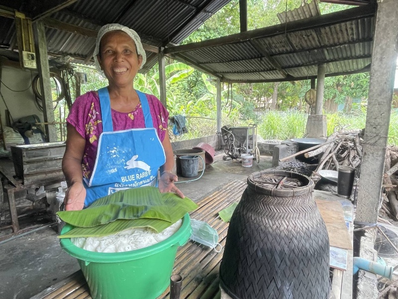 หนูกร สุนทรเพราะ จากอำเภอเขื่องใน จังหวัดอุบลราชธานี มีอาชีพทำเส้นขนมจีนขายมากว่าสองทศวรรษ ซึ่งอาชีพนี้ถือเป็นแรงขับเคลื่อนสำคัญในการเลี้ยงครอบครัวมาตั้งแต่สามีของเธอเสียชีวิต