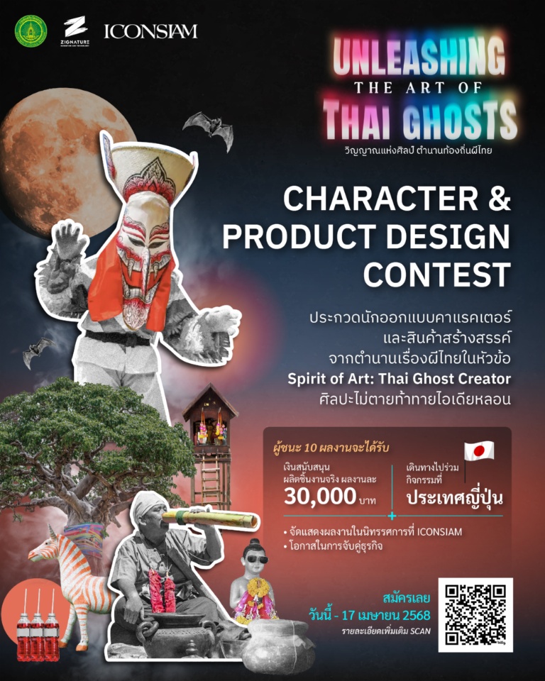 โดยกิจกรรมหลักในโครงการ Unleashing the Art of Thai Ghosts นี้ประกอบด้วย การประกวดออกแบบคาแรคเตอร์และสินค้าสร้างสรรค์ โดยผู้เข้าประกวดสามารถส่งผลงานได้ตั้งแต่วันที่ 10 มีนาคม – 17 เมษายน 2568 โดยผลงานที่ได้รับเลือกรอบ 10 อันดับจะได้นำผลงานไป Showcase ที่ศูนย์การค้าไอคอนสยามเป็นระยะเวลา 10 วัน รวมถึงได้เดินทางไปร่วมงาน Symposium เพื่อฟังการแลกเปลี่ยนองค์ความรู้เกี่ยวกับวัฒนธรรมความเชื่อเรื่องผีและตำนานประจำถิ่น และได้ทำกิจกรรม Workshop ที่กรุงโตเกียว ประเทศญี่ปุ่น