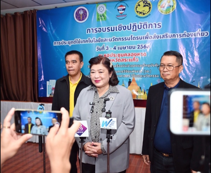 เมื่อวันที่ 3 เมษายน 2568 สำนักงานการวิจัยแห่งชาติ(วช.) กระทรวงการอุดมศึกษา วิทยาศาสตร์ วิจัยและนวัตกรรม ร่วมกับ จังหวัดสระแก้วและสมาคมกีฬาเครื่องบินจำลองและวิทยุบังคับ จัดการอบรมเชิงปฏิบัติการในหัวข้อ “การประยุกต์ใช้เทคโนโลยีและนวัตกรรมโดรนเพื่อส่งเสริมการท่องเที่ยว ” โดยมี ดร.วิภารัตน์ ดีอ่อง ผู้อำนวยการสำนักงานการวิจัยแห่งชาติ เป็นประธานในพิธี พร้อมนี้ นายชยพล อินทรสุภา นายอำเภอคลองหาด กล่าวต้อนรับ และ นายพิศิษฐ์ มิตรเกื้อกูล นายกสมาคมกีฬาเครื่องบินจำลองและวิทยุบังคับ กล่าวรายงาน พร้อมด้วยคณะผู้บริหาร สื่อมวลชน และผู้เข้าร่วมอบรม ณ ห้องอบรม หอประชุมอำเภอคลองหาด จังหวัดสระแก้ว