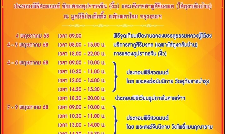 มูลนิธิป่อเต็กตึ๊ง ขอเชิญศิษยานุศิษย์และสาธุชน ร่วมงานฉลองบรรลุธรรมหลวงปู่ไต้ฮง (ไต้ฮงกง) ประจำปี 2568 สักการะหลวงปู่ไต้ฮง ชมการแสดงอุปรากรจีน (งิ้ว) และรับประทานสาคูสิริมงคล ณ มูลนิธิป่อเต็กตึ๊ง พลับพลาไชย กรุงเทพฯ