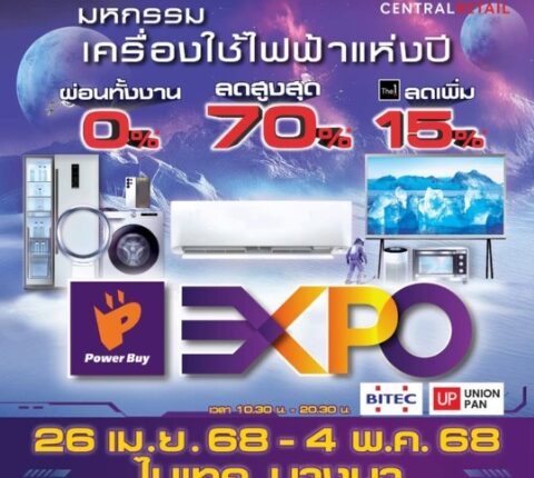 ยูเนี่ยนแพนฯ จับมือ ร่วมกับ เพาเวอร์บาย ในเครือเซ็นทรัล รีเทล จัดงาน Power Buy Expo ภายใต้แนวคิด “มางานเดียว ครบ จบ เรื่องเครื่องใช้ไฟฟ้า และสินค้าไอที” บนพื้นที่เดียวกับ The Biggest Fair 2025 ที่พร้อมยกทัพเครื่องใช้ไฟฟ้าจากแบรนด์ชั้นนำ มาลดกระหน่ำสูงสุดกว่า 70% และโปรชั่น รวมถึงสิทธิพิเศษอรีกมากมาย ตลอดทั้ง 9 วันของการจัดงาน ระหว่างวันที่ 26 เมษายน ถึง 4 พฤษภาคม 2568 ฯ ศูนย์การจัดนิทรรศการ และการประชุม ไบเทค (ไบเทค บางนา) EH 102-104
