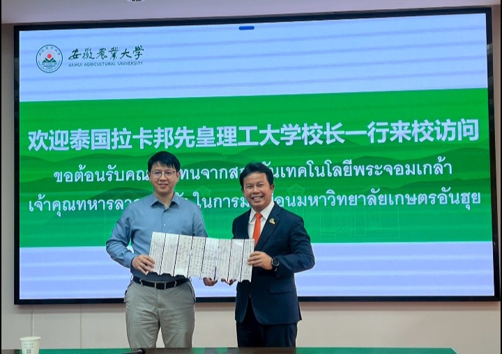 เมื่อเร็วๆ นี้ รองศาสตราจารย์ ดร. คมสัน มาลีสี อธิการบดีสถาบันเทคโนโลยีพระจอมเกล้าเจ้าคุณทหารลาดกระบัง (สจล.) พร้อมด้วยคณะผู้บริหาร และตัวแทนของ สจล. ได้รับเกียรติจาก Anhui Agriculture University สาธารณรัฐประชาชนจีน ให้เดินทางเข้าเยี่ยมชมมหาวิทยาลัย เพื่อหารือแนวทางการสร้างความร่วมมือด้านวิชาการกับภาควิชาครุศาสตร์เกษตร คณะครุศาสตร์อุตสาหกรรมและเทคโนโลยี สจล.