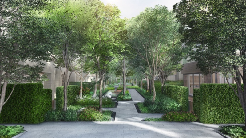 เมื่อคุณภาพของสเปซจะตอบโจทย์การใช้ชีวิตได้จริง ดังนั้นการออกแบบภูมิทัศน์ (Landscape Concept) สวนส่วนกลาง ออกแบบให้มีพื้นที่ใช้งานทั้งแบบ Passive และ Active กระจายอยู่ทั้งสองสวน เพื่อมุ่งสร้างปฎิสัมพันธ์ร่วมกันระหว่างลูกบ้าน ขณะที่การจัดองค์ประกอบของ The terrace and koi pond เป็นพื้นที่นั่งริมน้ำที่ให้ความรู้สึกผ่อนคลาย มีเสียงของน้ำ รวมถึงสีสันและการเคลื่อนไหวของปลาคราฟ โอบล้อมด้วยต้นไม้ใหญ่ให้ความรู้สึกเหมือนพักผ่อนท่ามกลางธรรมชาติ