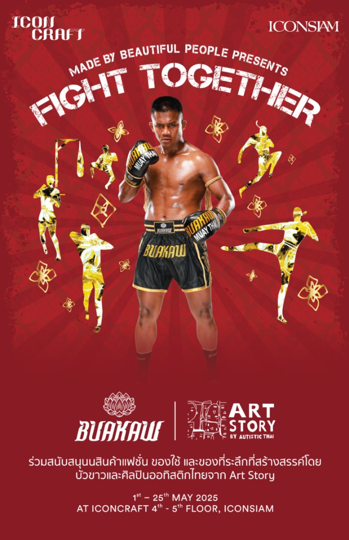 ไอคอนคราฟต์ (ICONCRAFT) พื้นที่แห่งแรงบันดาลใจ แหล่งรวมงานคราฟต์สร้างสรรค์จากช่างฝีมือไทยที่ใหญ่ที่สุด ร่วมเชิดชูนักสู้ไทยและสนับสนุนการสู้เพื่อสังคมไปด้วยกัน ผ่านโครงการ ICONCRAFT Co-Create ชวนสองแบรนด์เลือดนักสู้ “BUAKAW” ของ บัวขาว บัญชาเมฆ และ “ARTSTORY by Autistic Thai” มูลนิธิออทิสติกแห่งประเทศไทย มาสร้างสรรค์คอลเลกชันพิเศษ “FIGHT TOGETHER” ภายในโซน Made by Beautiful People ไอคอนคราฟต์ ชั้น 4 พร้อมจัดกิจกรรมเสริมแรงบันดาลใจ “From Heart to Art จากความทรงจำ สู่จินตนาการ” ให้คนไทยและชาวต่างชาติจากทั่วโลกได้สัมผัสเสน่ห์ของศิลปะการต่อสู้แบบไทยผ่านเรื่องเล่าของนักมวยชื่อดัง และประทับใจกับการสู้เพื่อสังคมของพวกเขา