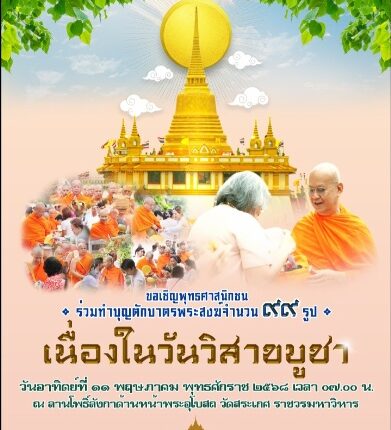 วัดสระเกศ ราชวรมหาวิหาร (ภูเขาทอง) ขอเชิญชวนพุทธศาสนิกชน ระลึกถึงคุณพระรัตนตรัย เนื่องในโอกาส “วันวิสาขบูชาโลก” ในวันอาทิตย์ที่ ๑๑ พฤษภาคม ๒๕๖๘