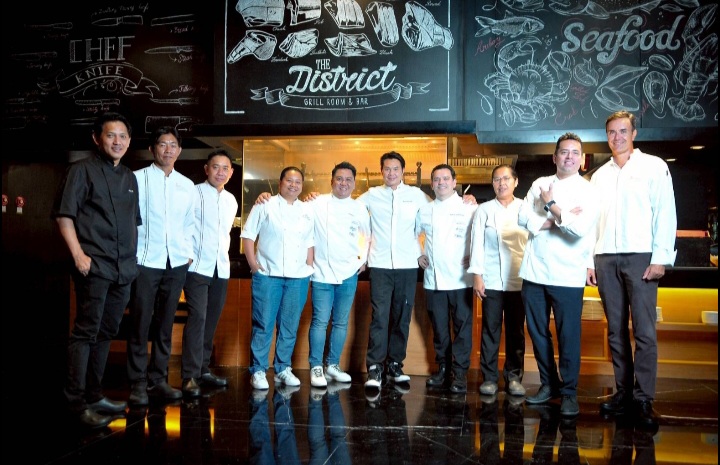 • เอ็กเซ็กคูทีฟเพสทรีเชฟสุชาติ วัชรสิทธิ์ เชฟเดอคูซีนห้องอาหารเดอะ ดิสทริคท์ กริลล์ รูมแอนด์ บาร์ พิกุล บุญศักดิ์ และ เอ็กเซ็กคิวทีฟเชฟเฟรดเดริค ฟาริน่า จากโรงแรมแมริออท กรุงเทพฯ สุขุมวิท