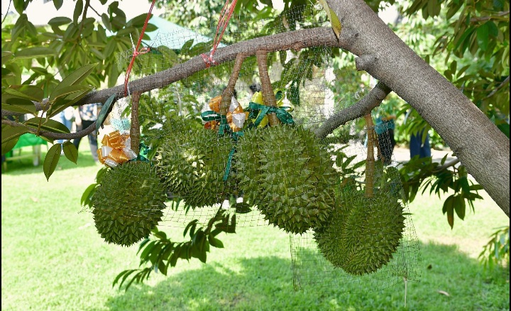 ในปี พ.ศ.2568 ทุเรียนออกดอก ติดผล ทั้งหมด 5 พันธุ์ จำนวนประมาณ 60 ผล ได้แก่