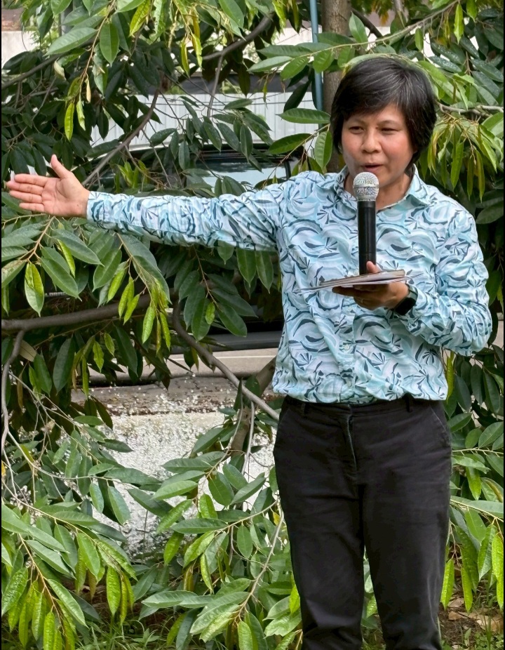 4. ช่วงจังหวะดอกบานประมาณกลางเดือนกุมภาพันธ์ 2568 ฝนตกหนัก ซึ่งเป็นปัญหาในการผสมเกสร ต้องใช้สารควบคุมการเจริญเติบโตพืชกลุ่ม ออกซิน (NAA) 4.5% ฉีดพ่นเพื่อช่วยการติดผล