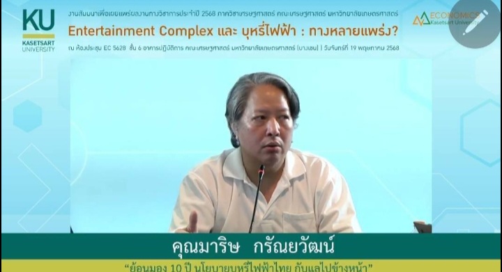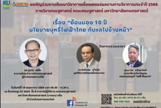 คณะเศรษฐศาสตร์ มหาวิทยาลัยเกษตรศาสตร์ จัดงานสัมมนาเพื่อเผยแพร่ผลงานทางวิชาการ ประจำปี 2568 ในหัวข้อ “Entertainment Complex และ บุหรี่ไฟฟ้า : ทางหลายแพร่ง?” โดยในหัวข้อ “ย้อนมอง 10 ปี นโยบายบุหรี่ไฟฟ้าไทยกับแลไปข้างหน้า” มีผู้ร่วมสัมมนา ได้แก่ รศ.อุ่นกัง แซ่ลิ้ม อาจารย์ประจำภาควิชาเศรษฐศาสตร์ มหาวิทยาลัยเกษตรศาสตร์, นายมาริษ กรัณยวัฒน์ แอดมินเพจ “บุหรี่ไฟฟ้าคืออะไร” และ ทนายเกิดผล แก้วเกิด ผู้ก่อตั้งมูลนิธิทนายเกิดผลเพื่อประชาชน โดยมีคณาจารย์ นิสิต นักศึกษา และผู้สนใจ เข้าร่วมเข้าฟังสัมมนาในครั้งนี้