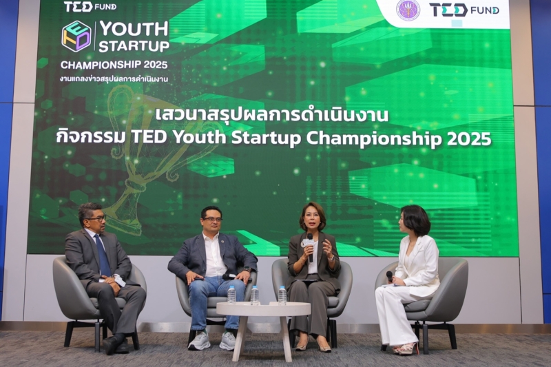 ประธานบอร์ดกองทุน TED Fund แถลงผลการดำเนินงาน “TED Youth Startup Championship 2025” โชว์ผลงานสุดยอดนวัตกรรมแต่ละภูมิภาคจากสตาร์ทอัพไทย พร้อมเดินหน้าหนุนสร้าง ผู้ประกอบการนวัตกรรมทุกระดับ ตั้งแต่ระดับเยาวชน สตาร์ทอัพ และ SMEs