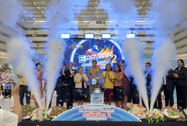 งานแสดงและจำหน่ายสินค้า “Eastern 2 TO GLOBAL 2025 อัตลักษณ์พื้นถิ่นตะวันออก 2 สู่สากล” ตามโครงการเพิ่มศักยภาพภาคการเกษตรในกลุ่มจังหวัดภาคตะวันออก 2 กิจกรรมเพิ่มศักยภาพการตลาดสินค้าเกษตร เกษตรแปรรูปในกลุ่มจังหวัดภาคตะวันออก 2 ครั้งที่ 2 วันจันทร์ที่ 16 มิถุนายน 2568 ณ ลานอเนกประสงค์ ชั้น 2 อาคารรัฐประศาสนภักดี (อาคาร B) ศูนย์ราชการเฉลิมพระเกียรติ 80 พรรษา 5 ธันวาคม 2550 ถนนแจ้งวัฒนะ กรุงเทพมหานคร