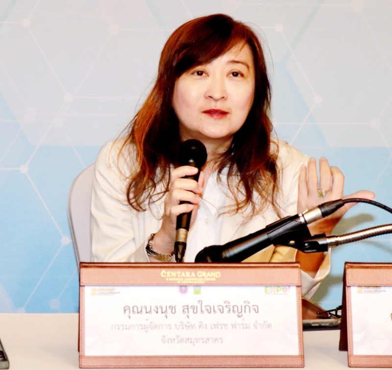 คุณนงนุช สุขใจเจริญกิจ Chief Executive Officer บริษัท คิง เฟรช ฟาร์ม จำกัด กล่าวว่า “ในฐานะผู้ประกอบการด้านการส่งออกทุเรียน เราเห็นว่าตลาดจีนมีความต้องการสูง แต่ก็มาพร้อมกับความท้าทายด้านคุณภาพและระยะเวลาการขนส่ง บริษัทของเราเน้นการใช้เทคโนโลยีหลังการเก็บเกี่ยว เช่น การแปรรูปทุเรียนแช่แข็งและอบแห้ง เพื่อเพิ่มมูลค่าและยืดอายุการเก็บรักษา การเปลี่ยนแปลงสภาพอากาศส่งผลกระทบต่อปริมาณผลผลิต แต่เราสามารถรับมือได้ด้วยการวางแผนการเพาะปลูกและใช้ระบบชลประทานที่ทันสมัย การเสวนาครั้งนี้เป็นโอกาสที่ดีในการเชื่อมโยงนวัตกรรมจากนักวิจัยสู่ภาคปฏิบัติ เพื่อสร้างความยั่งยืนให้กับอุตสาหกรรมทุเรียน”