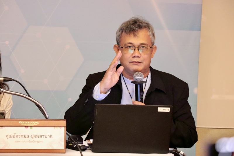 นายฉัตรกมล มุ่งพยาบาล เกษตรกรจากจังหวัดชุมพร กล่าวว่า “ในฐานะเกษตรกรรายย่อย การปลูกทุเรียนในช่วงที่สภาพอากาศเปลี่ยนแปลงเป็นเรื่องท้าทายอย่างมาก บางปีฝนตกหนัก บางปีภัยแล้ง ทำให้ผลผลิตไม่แน่นอน ผมได้เรียนรู้เทคนิคใหม่ๆ เช่น การใช้ปุ๋ยชีวภาพและระบบน้ำหยดจากงานวิจัยที่ได้รับการสนับสนุนจาก วช. ซึ่งช่วยเพิ่มคุณภาพและปริมาณผลผลิต การส่งออกไปจีนต้องปฏิบัติตามมาตรฐานที่เข้มงวด ผมหวังว่างานเสวนาครั้งนี้จะช่วยให้เกษตรกรอย่างผมเข้าถึงความรู้และเทคโนโลยีใหม่ๆ เพื่อพัฒนาการปลูกและส่งออกทุเรียนให้ได้มาตรฐานสากล”