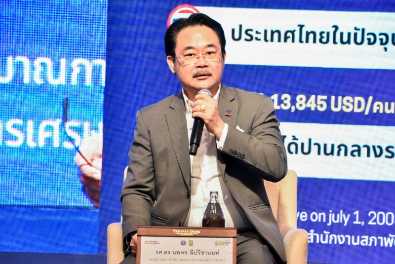 รศ.ดร.นพพร ลีปรีชานนท์ รองผู้อำนวยการสำนักงานคณะกรรมการส่งเสริมวิทยาศาสตร์ วิจัยและนวัตกรรม กล่าวในหัวข้อ “กลไกในการสนับสนุนการพัฒนาบุคลากรวิจัยและนวัตกรรม ในการสร้างเทคโนโลยีชั้นนำเพื่อตอบสนองเป้าหมาย SDGs” ว่า การขับเคลื่อนเป้าหมาย SDGs จำเป็นต้องอาศัยบุคลากรที่มีความรู้ความสามารถเฉพาะทาง โดยเฉพาะด้าน AI หุ่นยนต์ และพลังงานสะอาด สกสว. จึงสนับสนุนทุนวิจัยและทุนพัฒนาศักยภาพนักวิจัยรุ่นใหม่อย่างต่อเนื่อง ทั้งในระดับปริญญาเอกและหลังปริญญา นอกจากนี้ ยังเร่งสร้างเครือข่ายความร่วมมือกับสถาบันวิจัยระดับนานาชาติ เพื่อเปิดโอกาสให้นักวิจัยไทยได้แลกเปลี่ยนองค์ความรู้กับนักวิจัยชั้นนำทั่วโลก พร้อมผลักดันให้เกิดการวิจัยแบบบูรณาการที่สามารถนำไปใช้ประโยชน์ได้จริง และมีผลกระทบเชิงบวกต่อสังคมและสิ่งแวดล้อม