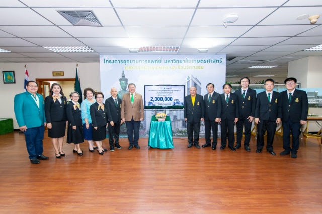 ดร.ดำรงค์ ศรีพระราม รักษาการแทนอธิการบดีมหาวิทยาลัยเกษตรศาสตร์ รับมอบเงินบริจาคจำนวน 2,300,000 บาท ซึ่งเป็นเงินรายได้หลังหักค่าดำเนินการจัดโครงการ เดินวิ่งการกุศล KU RUN 4 จากสมาคมนิสิตเก่ามหาวิทยาลัยเกษตรศาสตร์ ในพระบรมราชูปถัมภ์ (ส.มก.) นำโดย นายสุวิศว์ เมฆเสรีกุล นายกส.มก. และคณะกรรมการดำเนินการจัดงาน เดินวิ่งการกุศล KU RUN 4 ทั้งนี้เพื่อนำไปสมทบการก่อสร้างคณะแพทยศาสตร์และโรงพยาบาลเกษตรศาสตร์ ภายใต้โครงการอุทยานการแพทย์ มหาวิทยาลัยเกษตรศาสตร์ โอกาสนี้ ผศ. ดร.นุชนาถ มั่งคั่ง รองอธิการบดีฝ่ายการเงินและบริหารทรัพย์สิน ผศ.ดร.กฤษณ์ วันอินทร์ รองอธิการบดีฝ่ายนวัตกรรมและพันธกิจเพื่อสังคม ร่วมเป็นสักขีพยาน เมื่อวันที่ 19 มิถุนายน 2568 ณ ห้องอธิการบดี อาคารสารนิเทศ 50 ปี มหาวิทยาลัยเกษตรศาสตร์