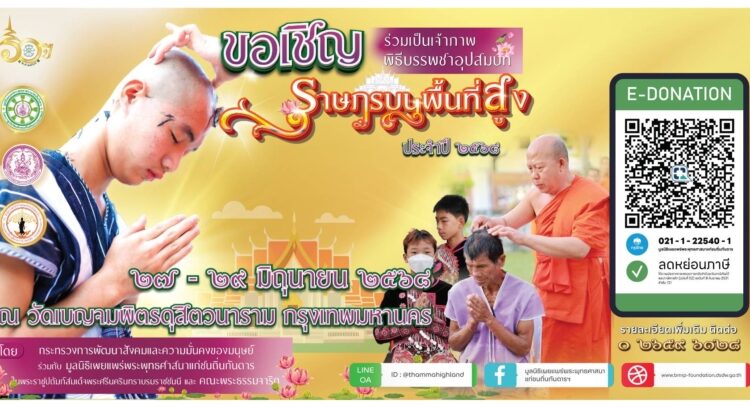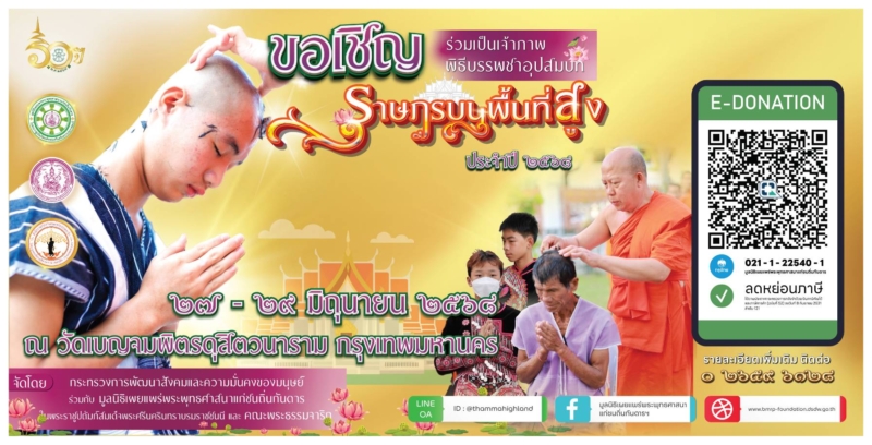 🙏..เรียนเชิญร่วมเป็นเจ้าภาพบรรพชาอุปสมบทราษฎรบนพื้นที่สูง ประจำปี 2568 โครงการพระธรรมจาริก , มูลนิธิเผยแพร่พระพุทธศาสนาแก่ชนถิ่นกันดารฯ และกรมพัฒนาสังคมและสวัสดิการ จัดพิธีบรรพชาอุปสมบทราษฎรบนพื้นที่สูง จำนวน 173 รูป