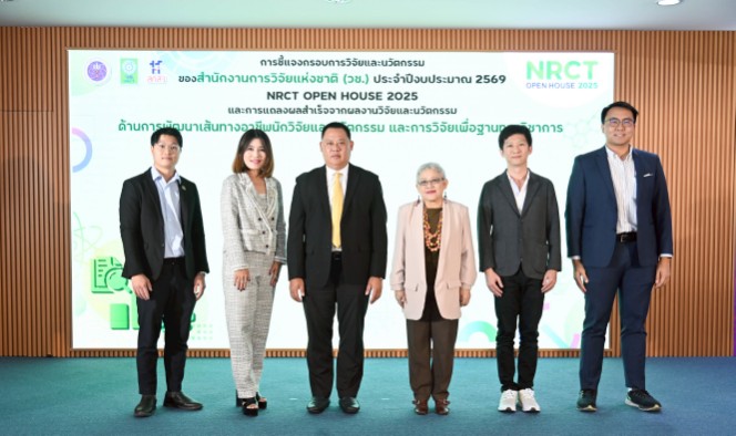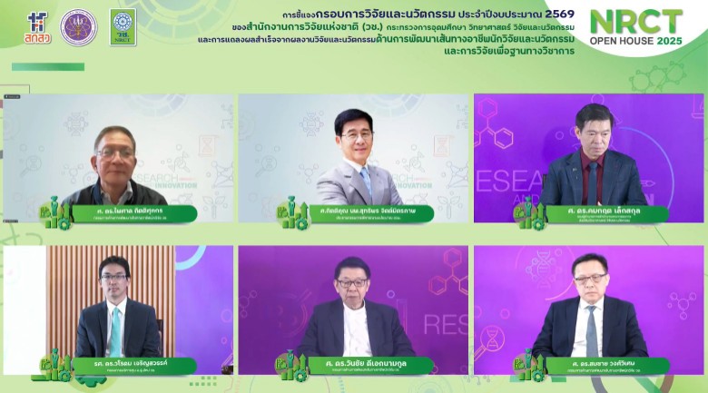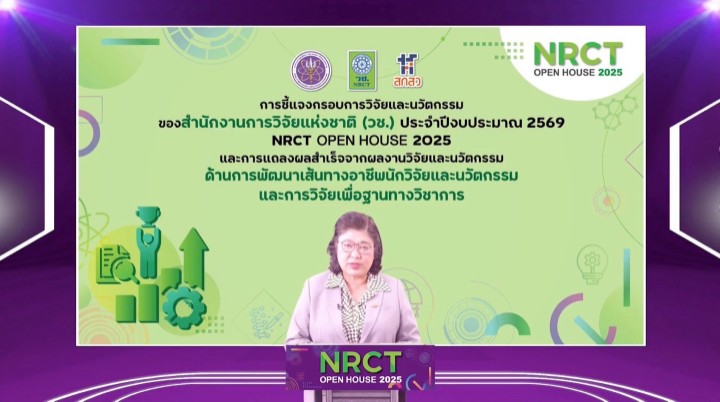 วันที่ 25 มิถุนายน พ.ศ. 2568 สำนักงานการวิจัยแห่งชาติ (วช.) กระทรวงการอุดมศึกษา วิทยาศาสตร์ วิจัยและนวัตกรรม จัดกิจกรรมเปิดบ้านชี้แจงกรอบการวิจัยและนวัตกรรม ประจำปีงบประมาณ 2569 (NRCT Open House 2025) และการแถลงผลสำเร็จจากผลงานวิจัยและนวัตกรรม “ด้านการพัฒนาเส้นทางอาชีพนักวิจัยและนวัตกรรม และการวิจัยเพื่อฐานทางวิชาการ” โดยมี ดร.วิภารัตน์ ดีอ่อง ผู้อำนวยการสำนักงานการวิจัยแห่งชาติ เป็นประธานเปิดงาน โดยมีผู้เข้าร่วมรับฟังทั้งจากหน่วยงานภาครัฐ ภาคเอกชน สถาบันการศึกษา นักวิจัย ตลอดจนผู้สนใจด้านการวิจัยและนวัตกรรมเข้าร่วม ณ ห้องประชุมจอมพลสฤษดิ์ ธนะรัชต์ ชั้น 2 อาคาร วช.1