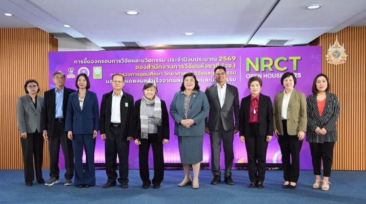 วช. ขอเชิญร่วมงาน “NRCT Open House 2025” กิจกรรมเปิดบ้านชี้แจงกรอบการวิจัยและนวัตกรรม ประจำปีงบประมาณ 2569 พร้อมการแถลงผลสำเร็จจากผลงานวิจัยและนวัตกรรม ซึ่งยังคงมีการจัดกิจกรรมอีก 3 ด้านสำคัญ ดังนี้ ด้านการพัฒนาเทคโนโลยีและอุตสาหกรรม (29 มิถุนายน 2568) ด้านการพัฒนาศูนย์รวมผู้เชี่ยวชาญ (Hub of Talents) และศูนย์กลางความรู้ (Hub of Knowledge) (30 มิถุนายน 2568)