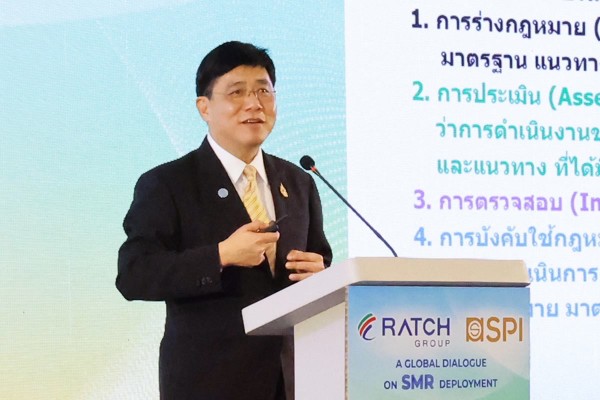 นายแพทย์รุ่งเรือง กิจผาติ อธิบดีกรมวิทยาศาสตร์บริการ รรท. เลขาธิการสำนักงานปรมาณูเพื่อสันติ (ปส.) กระทรวงการอุดมศึกษา วิทยาศาสตร์ วิจัยและนวัตกรรม (อว.) เปิดเผยภายหลังร่วมบรรยายพิเศษในหัวข้อ “ความก้าวหน้าด้านกฎหมายและมาตรฐานต่าง ๆ เพื่อรองรับการพัฒนาเทคโนโลยี SMR ในประเทศไทย“ บนเวทีสัมมนาระดับชาติ “A Global Dialogue on SMR Deployment” ในวันที่ 16 กรกฎาคม 2568 จัดขึ้นโดย บริษัท ราช กรุ๊ป จำกัด (มหาชน) ร่วมกับ บริษัท สหพัฒนาอินเตอร์โฮลดิ้ง จำกัด (มหาชน) ณ ศูนย์ประชุมแห่งชาติสิริกิติ์ ว่า ภายใต้นโยบายของกระทรวง อว. ที่มุ่งขับเคลื่อนวิทยาศาสตร์และเทคโนโลยีขั้นสูงสู่การพัฒนาประเทศชาติอย่างยั่งยืน ปส. ในฐานะหน่วยงานด้านการกำกับดูแลความปลอดภัยทางนิวเคลียร์และรังสีของประเทศไทย ซึ่งมีความสำคัญในการร่วมเตรียมความพร้อมอย่างรอบด้านในการรองรับโรงไฟฟ้านิวเคลียร์มาตรฐานปลอดภัยขนาดเล็ก (Small Modular Reactor: SMR) เพื่อเสริมความมั่นคงด้านพลังงาน และเป็นทางเลือกสำคัญในการเปลี่ยนผ่านสู่สังคมคาร์บอนต่ำของไทย โดยงานนี้ได้รับเกียรติจากนายประเสริฐ สินสุขประเสริฐ ปลัดกระทรวงพลังงาน เป็นประธานและองค์ปาฐกพิเศษในหัวข้อ “อนาคตของความมั่นคงทางพลังงาน” และผู้ทรงคุณวุฒิด้าน SMR มาร่วมให้ข้อมูลและแลกเปลี่ยนประสบการณ์มากมาย ได้แก่ มส.ชาลอต นิโคลส์ สมาชิกรัฐสภาอังกฤษและประธานร่วมกลุ่มสมาชิกรัฐสภาว่าด้วยพลังงานนิวเคลียร์ สหราชอาณาจักร มร.ไซมอน สตัทฟอร์ด ผู้บริหารระดับสูง Castletown Law จากสหราชอาณาจักร มร.โทรุ อิโตะ ผู้จัดการทั่วไป ฝ่ายจัดการโครงการ บริษัท ฮิตาชิ-จีอี เวอร์โนวา นิวเคลียร์ เอ็นเนอร์ยี่ จำกัด มร.เฉิน ฟางจุน ผู้แทนประจำประเทศไทย มาเลเซีย และเวียดนาม บริษัท ไชน่า เนชั่นแนล นิวเคลียร์ คอร์ปอเรชั่น และ มร.อเล็กซิส ออนเนอร์ ผู้จัดการฝ่ายพัฒนาธุรกิจ โรลส-รอยส์ SMR