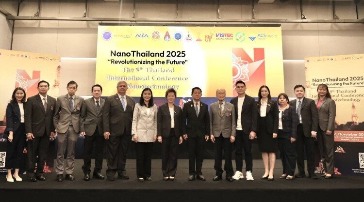 วันที่ 25 กรกฎาคม 2568 ณ โรงแรมรอยัล ออคิด เชอราตัน ริเวอร์ไซด์ กรุงเทพ – สำนักงานพัฒนาวิทยาศาสตร์และเทคโนโลยีแห่งชาติ (สวทช.) โดยศูนย์นาโนเทคโนโลยีแห่งชาติ (นาโนเทค) และสมาคมนาโนเทคโนโลยีแห่งประเทศไทย แถลงข่าว “การจัดประชุมวิชาการนานาชาติด้านนาโนเทคโนโลยี ประจำปี 2568 (NanoThailand2025) ภายใต้แนวคิด “Revolutionizing the Future” นาโนเทคโนโลยีพลิกโฉมโลกอนาคต เปิดเวทีแลกเปลี่ยนความรู้ด้านนาโนเทคโนโลยีทั้งไทยและระดับโลก พร้อมยกขบวนนวัตกรรมเด่นด้านนาโน-เทคโนโลยี อาทิ ไข่โอเมก้าสูง, สารสกัดกระชายดำมูลค่าสูง, ชุดตรวจสำหรับคนไทย, ระบบ/ต้นแบบการจัดการน้ำเพื่ออุตสาหกรรม, ไพลวาเซนโกลด์ และพาร์นิก้าครีม พร้อมโชว์ความสำเร็จของงานวิจัยสู่เชิงพาณิชย์จาก 2 บริษัทเอกชนชั้นนำอย่างสเปเชียลตี้ เนเชอรัล โปรดักส์และเอสบี เฟอร์นิเจอร์ ก่อนจัดเต็มกับ NanoThailand2025 ระหว่างวันที่ 3–5 พ.ย. นี้