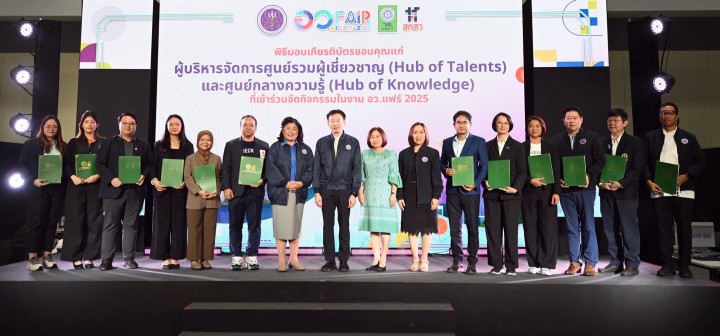 ปลัดกระทรวง อว. มอบเกียรติบัตรแก่ผู้บริหารศูนย์รวมผู้เชี่ยวชาญ (Hub of Talents) และศูนย์กลางความรู้ (Hub of Knowledge) ที่นำกิจกรรมภาคนิทรรศการและภาคการประชุมร่วมงานอว.แฟร์ 2025