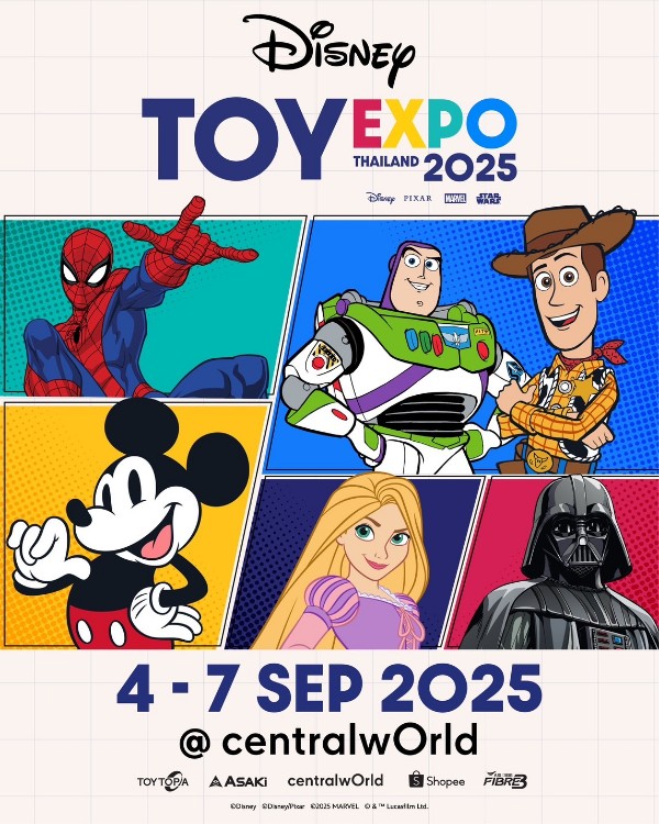 ดิสนีย์เดินหน้าสร้างสรรค์กิจกรรมระดับโลกในประเทศไทย ประกาศจัดงาน DISNEY TOY EXPO THAILAND 2025 ครั้งที่ 2 ซึ่งถือเป็นหนึ่งในงานรวมของเล่นและสินค้าคอลเลกชันลิขสิทธิ์ดิสนีย์ที่ใหญ่ที่สุดในเอเชียตะวันออกเฉียงใต้ งานมหกรรมครั้งนี้จะนำเสนอสินค้าลิขสิทธิ์ดิสนีย์จากแบรนด์ชั้นนำทั่วโลกกว่า 2,000 รายการ ครอบคลุมพื้นที่จัดงานกว่า 1,700 ตารางเมตร ที่เซ็นทรัลเวิลด์ แฟน ๆ เตรียมพบกับเซอร์ไพรส์มากมาย ทั้งกิจกรรม Meet & Greet สินค้าลิมิเต็ดเอดิชัน และกิจกรรมสุดพิเศษอีกมากมาย ตอกย้ำกระแสเติบโตของตลาดแฟนด้อม สินค้าคาแรกเตอร์ ของสะสม และอาร์ตทอย เข้าร่วมงานฟรี! ตลอด 4 วันเต็ม ตั้งแต่ 4–7 กันยายน 2568