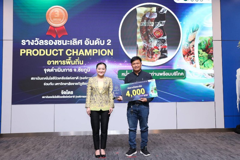 กระทรวงการอุดมศึกษา วิทยาศาสตร์ วิจัยและนวัตกรรม โดย สถาบันเทคโนโลยีนิวเคลียร์แห่งชาติ (องค์การมหาชน) หรือ สทน. จัดพิธีมอบรางวัล “Product Champion” อาหารพื้นถิ่นและอาหารฟังก์ชั่นในพื้นที่อีสาน 3 จังหวัด ได้แก่ จ.ชัยภูมิ จ.มหาสารคาม และจ.เลย มุ่งหวังสร้างการรับรู้การใช้ประโยชน์จากการฉายรังสีในอาหาร และยกระดับผลิตภัณฑ์อาหารพื้นถิ่นให้ปลอดภัยและได้มาตรฐานต่อไป