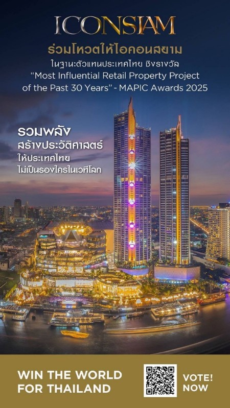 หลังจากเคยเอาชนะคู่แข่งจากทั่วโลกคว้ารางวัลชนะเลิศ MAPIC Award 2019 ในสาขา Best Shopping Centre ศูนย์การค้าที่ดีที่สุดในโลก มาครองก่อนหน้านี้ ไอคอนสยาม อภิมหาโครงการเมืองแห่งการใช้ชีวิตสู่โลกอนาคต สัญลักษณ์แห่งความรุ่งโรจน์ของไทยริมฝั่งแม่น้ำเจ้าพระยา ได้สร้างประวัติศาสตร์อีกครั้งด้วยการการเข้าชิงรางวัล “Most Influential Retail Property Project of the Past 30 Years” จาก MAPIC Awards 2025 ซึ่งนับเป็นความภาคภูมิใจของคนไทยทั้งประเทศ เพราะไอคอนสยามคือตัวแทนเพียงหนึ่งเดียวของประเทศไทยที่ผ่านเข้าสู่รอบชิงชนะเลิศในเวทีโลก โดยคนไทยทุกคนสามารถมีส่วนร่วมในการเขียนประศาสตร์หน้าใหม่ให้ประเทศไทยขึ้นแท่นเป็นผู้นำค้าปลีกโลก และเป็นจุดหมายปลายทางที่ทั่วโลกต้องมาเยือนได้ ผ่านการรวมพลังโหวตให้ไอคอนสยามคว้าชัย เป็นสุดยอดโครงการค้าปลีกของโลกในรอบ 30 ปี ผ่านช่องทางดังนี้