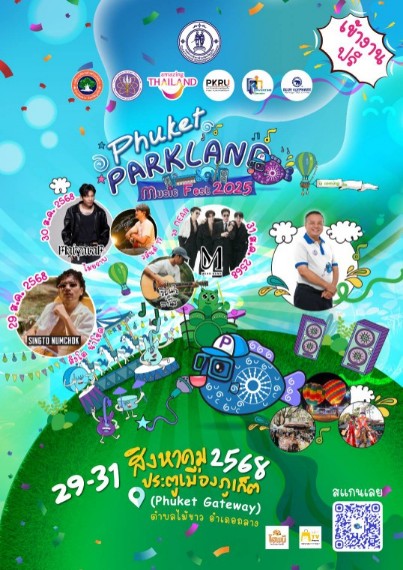 องค์การบริหารส่วนจังหวัดภูเก็ต เชิญชวนทุกท่านร่วมสัมผัสประสบการณ์ความสนุกครั้งยิ่งใหญ่กับเทศกาลดนตรี ศิลปะ และไลฟ์สไตล์ร่วมสมัย “PHUKET PARKLAND & MUSIC FEST 2025” ระหว่างวันที่ 29-31 สิงหาคม 2568 ณ ประตูเมืองภูเก็ต (Phuket Gateway) ตำบลไม้ขาว อำเภอถลาง จังหวัดภูเก็ต ซึ่งนับเป็นงานมหกรรมที่รวมเอาความบันเทิงครบทุกมิติไว้ในที่เดียว ทั้งคอนเสิร์ตจากศิลปินชื่อดังระดับประเทศ กิจกรรมสร้างสรรค์ด้านศิลปะ การแสดง และโซนไลฟ์สไตล์ที่ตอบโจทย์ทุกเจเนอเรชัน ตลอด 3 วันเต็มที่จะเปลี่ยนภูเก็ตให้กลายเป็นเมืองแห่งเสียงดนตรีและความสุขอย่างแท้จริง