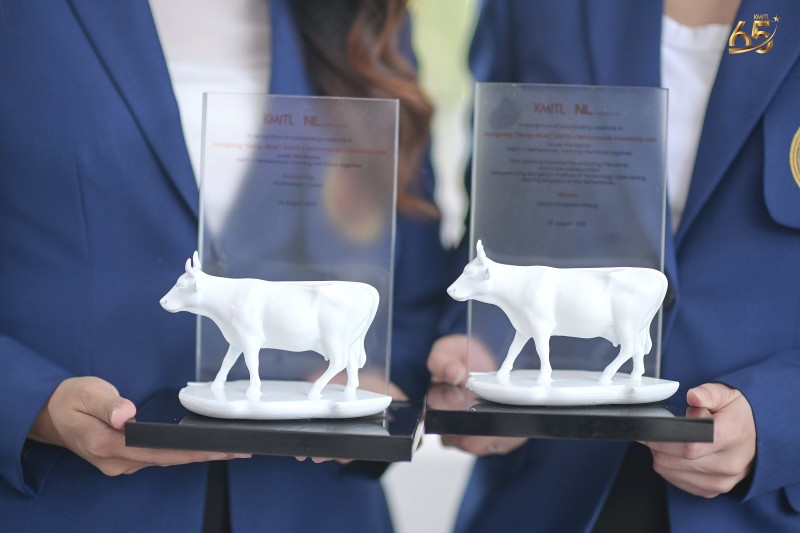 3. ผลงานชนะเลิศจึงถูกถ่ายทอดลงบนประติมากรรม “น้องวัว” ที่จะกลายเป็นสัญลักษณ์ถาวรแห่งมิตรภาพระหว่าง สจล. และเนเธอร์แลนด์