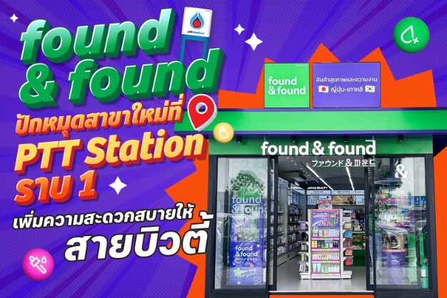 “found & found” ปักหมุดสาขาใหม่ล่าสุดที่ PTT Station ราบ 1 เพิ่มความสะดวกสบายให้สายบิวตี้ พร้อมรับโปรแรงฉลองเปิดร้าน 16–21 กันยายนนี้เท่านั้น!