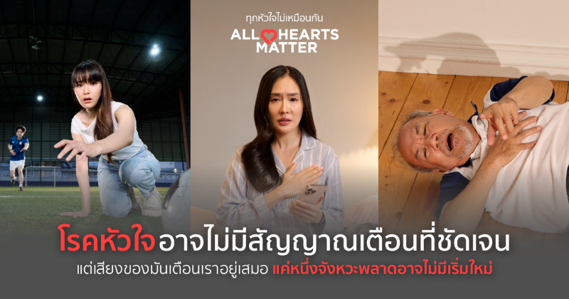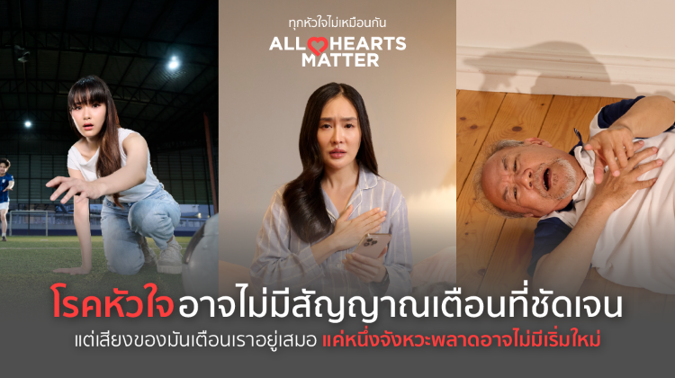 พร้อมเปิดตัวหนังสั้นที่สะท้อนสถานการณ์ของโรคหัวใจที่อาจเกิดขึ้นได้ โดยไม่มีสัญญาณเตือนที่ชัดเจน รับชมหนังสั้นและเรื่องราวที่เกี่ยวกับโรคหัวใจได้ที่นี่ “ทุกหัวใจไม่เหมือนกัน All Hearts Matter”