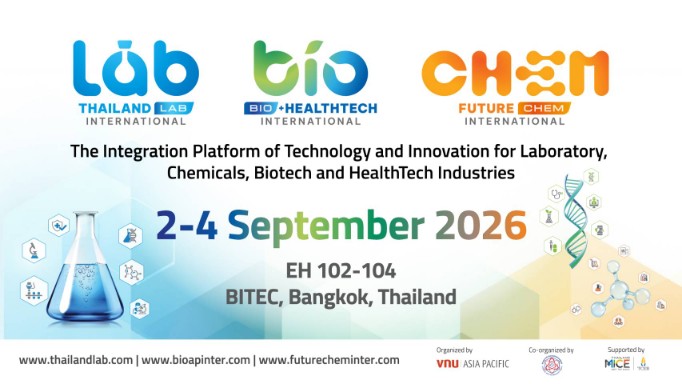 Thailand LAB INTERNATIONAL, Bio+ HealthTech INTERNATIONAL และ FutureCHEM INTERNATIONAL 2026 จะจัดขึ้นระหว่างวันที่ 2–4 กันยายน 2569 ณ ฮอลล์ EH 102–104 ไบเทค กรุงเทพฯ เข้าร่วมกับเราในแพลตฟอร์มชั้นนำของเอเชียด้านนวัตกรรมห้องปฏิบัติการ ชีววิทยาศาสตร์ และเคมี