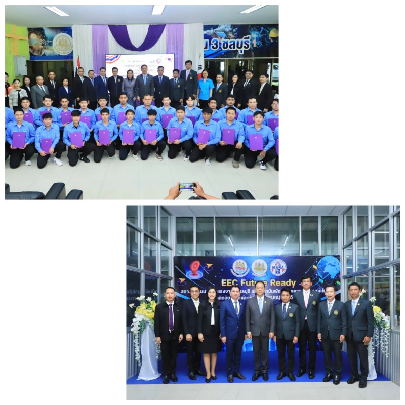 วันที่ 24 ตุลาคม 2568 นายสมาสภ์ ปัทมะสุคนธ์ รองปลัดกระทรวงแรงงาน เป็นประธานเยี่ยมชมงาน EEC Future Ready โดยมีนายภัทรวุธ เภอแสละ รองอธิบดีกรมพัฒนาฝีมือแรงงาน รักษาราชการแทนอธิบดีกรมพัฒนาฝีมือแรงงาน นายสมชาติ สุภารี รองอธิบดีกรมพัฒนาฝีมือแรงงาน และผู้บริหารกรมพัฒนาฝีมือแรงงาน ร่วมกิจกรรม ณ สถาบันพัฒนาฝีมือแรงงาน 3 ชลบุรี และสถาบันพัฒนาบุคลากรสาขาเทคโนโลยีการผลิตอัตโนมัติและหุ่นยนต์ (MARA) จังหวัดชลบุรี
