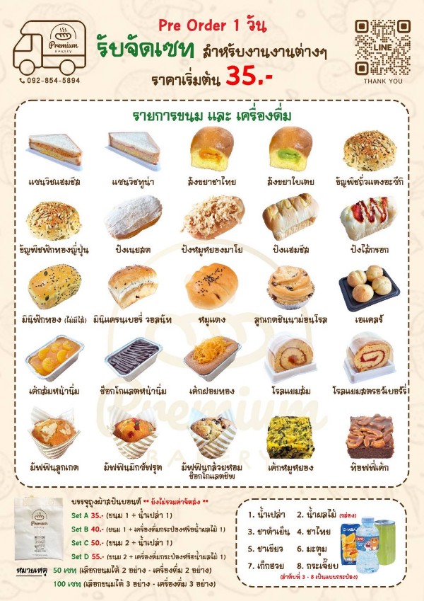 ร้าน พรีเมี่ยม เบเกอรี่ สนใจสอบถามข้อมูล สั่งออเดอร์ก็ได้ที่เบอร์โทร. 061-451-4663
