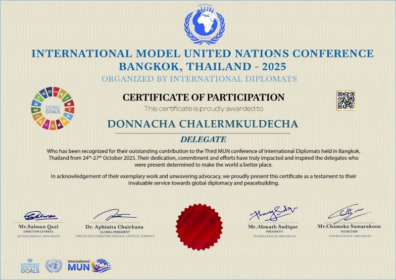 The programme was organized by the United Peacekeeping Federation Council (UNPKFC) in collaboration with international partners, providing Thai youth with the opportunity to learn about the structure and operations of the United Nations, as well as the direction of the Sustainable Development Goals (SDGs).