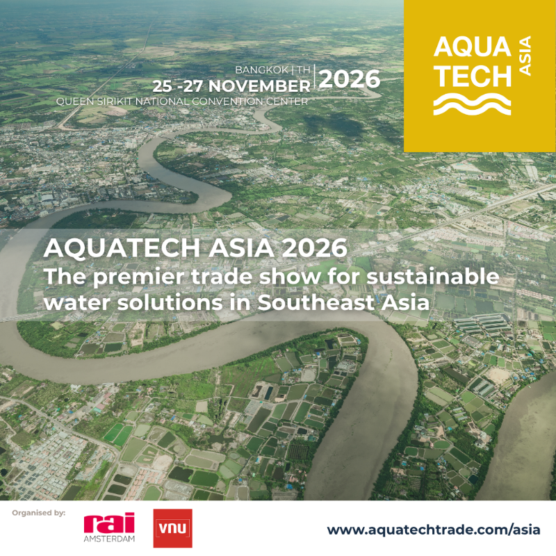 Aquatech Asia 2026 (อะควาเทค เอเชีย) จะจัดขึ้นระหว่างวันที่ 25–27 พฤศจิกายน 2026 ณ ศูนย์การประชุมแห่งชาติสิริกิติ์ กรุงเทพฯ โดยจะเป็นเวทีสำคัญในการแสดงนวัตกรรม เทคโนโลยี และโซลูชันด้านน้ำระดับโลก เพื่อสร้างอนาคตที่ยั่งยืนให้กับภูมิภาคเอเชีย สำหรับข้อมูลเพิ่มเติม กรุณาเยี่ยมชมเว็บไซต์ www.aquatechtrade.com