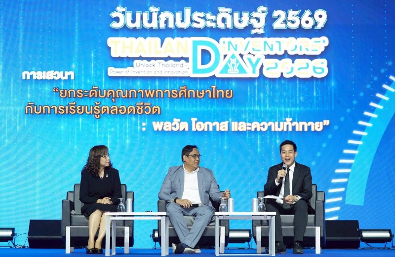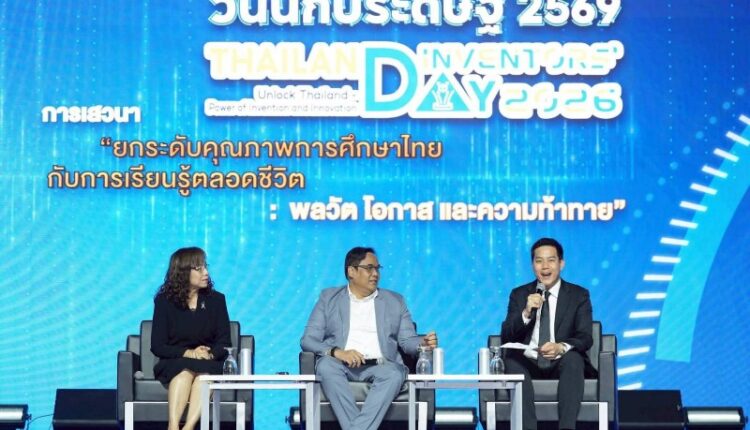 วันที่ 5 มกราคม 2568 สำนักงานการวิจัยแห่งชาติ (วช.) กระทรวงการอุดมศึกษา วิทยาศาสตร์ วิจัยและนวัตกรรม จัดการเสวนาในหัวข้อ เรื่อง “ยกระดับคุณภาพการศึกษาไทยกับการเรียนรู้ตลอดชีวิต: พลวัต โอกาส และความท้าทาย” ภายในงาน “วันนักประดิษฐ์” ประจำปี 2569 (Thailand Inventor’s Day 2026) โดยได้รับเกียรติจาก ดร.พันธุ์เพิ่มศักดิ์ อารุณี รองปลัดกระทรวงการอุดมศึกษา วิทยาศาสตร์ วิจัยและนวัตกรรม, ดร.รุ่งอรุณ ไสยโสภณ ผู้เชี่ยวชาญเฉพาะด้านส่งเสริมมาตรฐานการศึกษานอกโรงเรียน กรมส่งเสริมการเรียนรู้ ร่วมเสวนาในครั้งนี้ และดำเนินรายการโดย รองศาสตาจารย์ ดร.ณัฐดนัย หาญการสุจริต มหาวิทยาลัยเกษตรศาสตร์ ณ เวทีกลาง Event Hall 100 – 104 ศูนย์นิทรรศการและการประชุมไบเทค บางนา กรุงเทพมหานคร