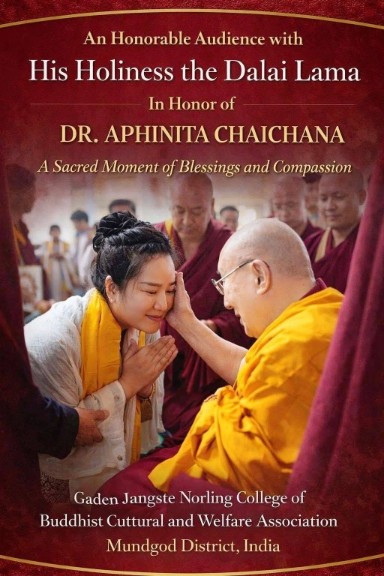 จารึกประวัติศาสตร์: ดร. อภินิตา ไชยชนะ สตรีหนึ่งเดียวผู้ได้รับเกียรติกล่าวปาฐกถา เชื่อมหลักธรรมสร้างสันติภาพสากล ในโอกาสเข้าเฝ้าองค์สมเด็จพระดาไลลามะที่ 14