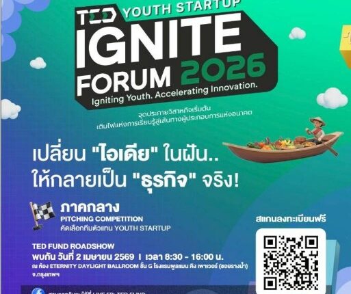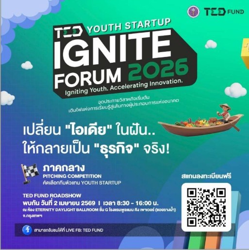 จัดยิ่งใหญ่“ชิงแชมป์นวัตกรรมระดับประเทศ! TED Youth Startup-IGNITE 2026 ปั้นไอเดียสู่ธุรกิจจริง”