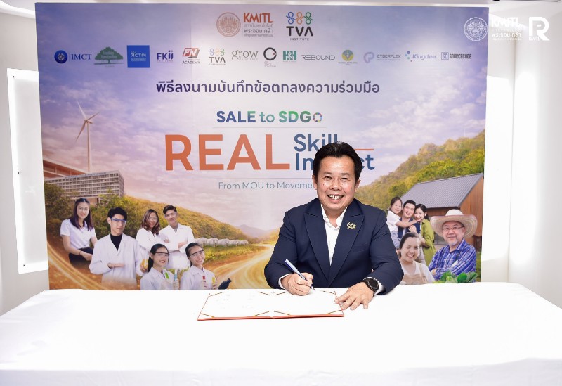 รองศาสตราจารย์ ดร.คมสัน มาลีสี อธิการบดี สถาบันเทคโนโลยีพระจอมเกล้าเจ้าคุณทหารลาดกระบัง (สจล.) และนายชยดิฐ หุตานุวัชร์ ประธานสถาบันทิวา (TVA) ซึ่งเป็นเครือข่ายความร่วมมือด้านธุรกิจและสังคมที่มุ่งเชื่อมโยงภาครัฐ ภาควิชาการ และภาคเอกชน เพื่อขับเคลื่อนโครงการพัฒนาเศรษฐกิจและชุมชนอย่างยั่งยืน ร่วมลงนามบันทึกความเข้าใจ (MOU) ระยะเวลา 5 ปี พร้อม 14 องค์กรพันธมิตรจากภาครัฐและเอกชน เพื่อขับเคลื่อนโครงการ “SALE to SDGs” โดยมีคณะผู้บริหารและตัวแทนองค์กรเครือข่ายร่วมเป็นสักขีพยานในความร่วมมือครั้งสำคัญ เพื่อพัฒนาโมเดลชุมชนยั่งยืนตามแนวคิดอารยเกษตร และสร้างระบบนิเวศเศรษฐกิจชุมชนแบบครบวงจร
