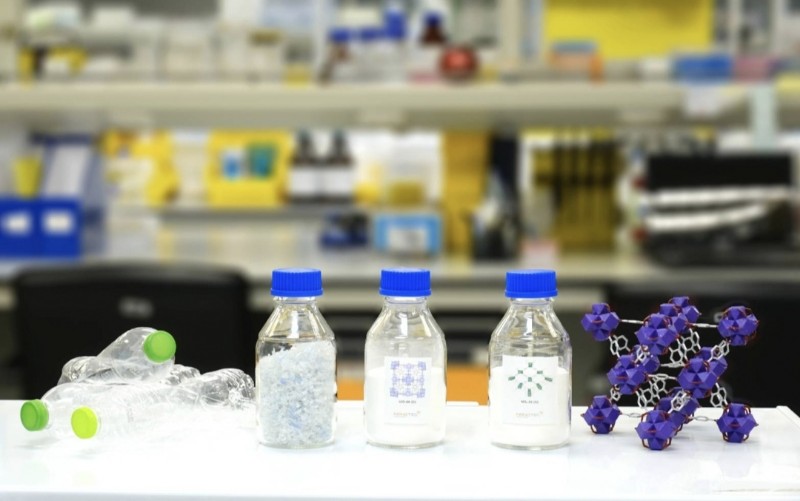 ตามมาด้วยวัสดุนาโนที่กำลังเป็นที่กล่าวถึงหลังคว้าโนเบลเคมี 2025 กับ “มอฟส์” (metal-organic frameworks: MOFs) ที่นาโนเทค สวทช. พัฒนาอย่างต่อเนื่อง หนึ่งในนั้นคือ การผลิต MOFs โดยใช้แนวคิดเศรษฐกิจหมุนเวียนเพื่อหมุนเวียนวัสดุเหลือใช้กลับมาใช้ประโยชน์ เช่น การย่อยสลายขวดน้ำดื่มพลาสติกเพื่อนำมาใช้แทนสารอินทรีย์ลิแกนด์ เป็นสารตั้งต้นสำคัญในการสังเคราะห์ MOFs หลายชนิดรวมถึงการสังเคราะห์ MOFs จากโลหะที่ได้จากของเสียอุตสาหกรรม เช่น mill scale จากอุตสาหกรรมเหล็ก และโลหะจากน้ำยากัดแผงวงจรพิมพ์ พร้อมออกแบบการขึ้นรูป MOFs ในหลากหลายรูปแบบเพื่อให้เหมาะสมกับการประยุกต์ใช้จริงในอุตสาหกรรม เช่น การขึ้นรูปเป็นเม็ด การเคลือบบนวัสดุรองรับ (support) และการขึ้นรูปเป็นเมมเบรนในลักษณะแผ่นหรือท่อกลวง ซึ่งช่วยให้ MOFs สามารถนำไปใช้งานได้สะดวก มีความทนทาน และมีประสิทธิภาพในการดูดซับหรือกรองสารปนเปื้อนได้ดียิ่งขึ้น ทั้งสำหรับดักจับก๊าซคาร์บอนไดออกไซด์, สารระเหยอินทรีย์ (VOCs) และไนโตรเจนออกไซด์ (NOx) ซึ่งเป็นก๊าซมลพิษสำคัญต่อสิ่งแวดล้อมและสุขภาพของมนุษย์ รวมถึงการดูดซับยาปฏิชีวนะ โลหะหนัก และการกำจัดสาร dichloroacetic acid (DCA) เป็นต้น